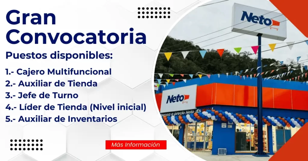 Guía para encontrar empleo de medio tiempo en Tiendas Neto. Turnos matutinos, vespertinos y fines de semana.